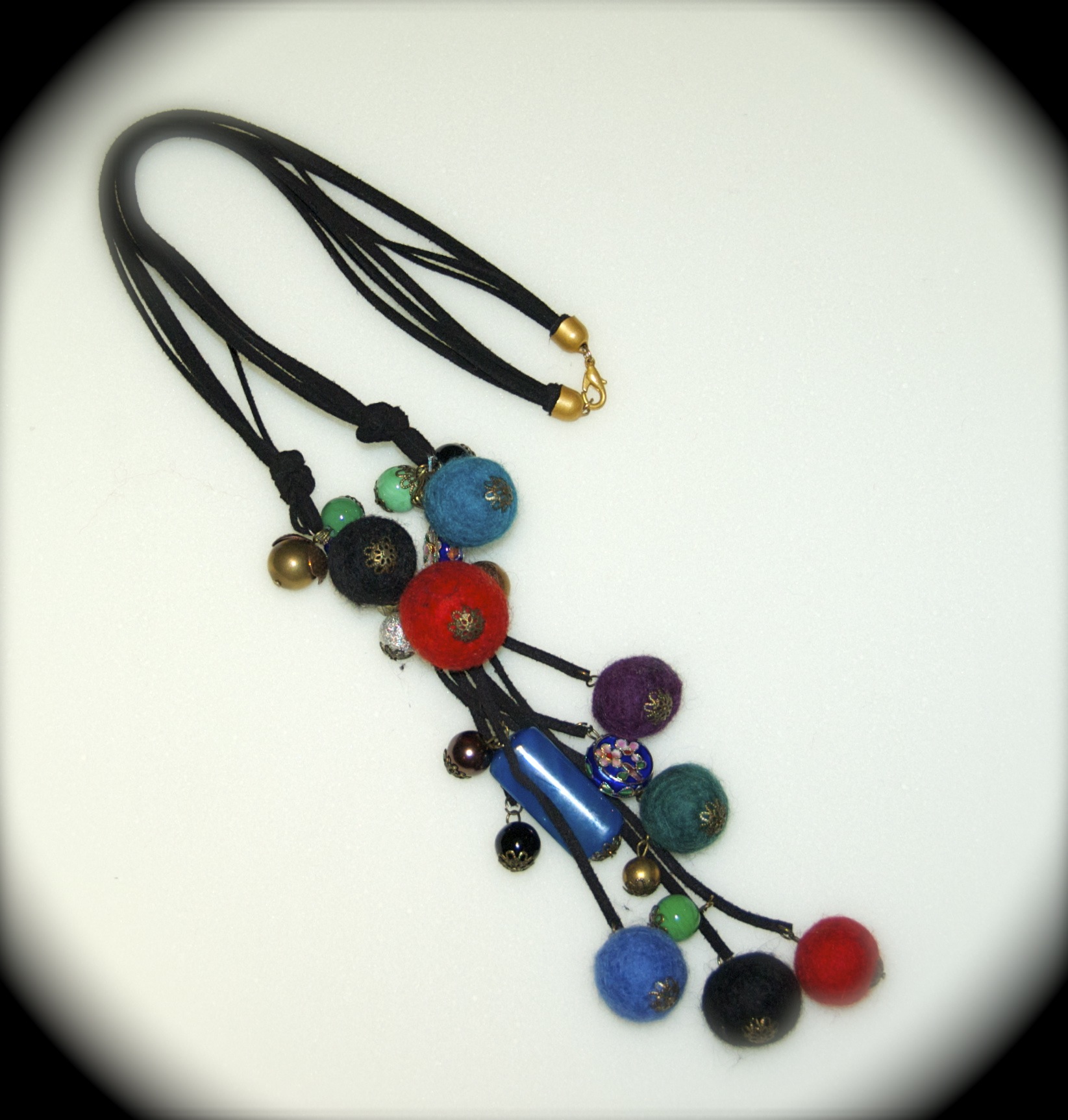 Il tutto viene unito con cordino scamosciato grigio chiaro